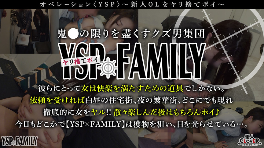 YSP×FAMILYとは…狙った女の子をあらゆる手段で接近してヤリ捨てぽいするヤリチン組織。今回はクレーム対応に来た雰囲気がエロい新人社員のゆきちゃんを家に上がらせて社会の厳しさを教えて上げることに。手始めに土下座をさせてスカートを捲り下着チェック。するとパンツにはシミができていて怒られている状況でおマンコ濡らすドMちゃんでした。そうと分かればあとはヤリたい放題♪電マとバイブでパイパンマンコを弄りまくり、男二人のイラマチオ攻めで口内射精からのごっくん。土下座状態からバックで挿入するとデカチンの気持ち良さに白目を剥いてイキまくるゆきちゃん。後半は謝罪の言葉を叫びながら絶頂して錯乱状態で腰を振りまくり気持ち良さそうでした♪社会の洗礼ということでフィニッシュは膣奥にしっかり中出し(2連発)♪体内にたっぷり精子を仕込んだ状態で帰らせて詫びで貰った菓子折りの煎餅も美味しく頂きミッションコンプリート。#土下座#色白#巨乳#パイパン#イラマチオ#口内射精#中出し。 ※本編顔出し