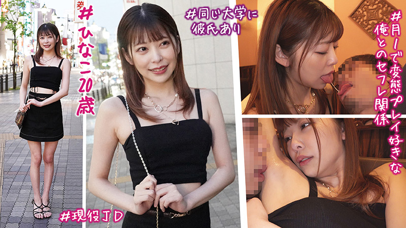 アプリで知り合ったセフレのひなこちゃん。もう女子大生の雰囲気じゃないッ!露出多め(笑)いつもよりラグジュアリーでキャバ嬢とアフターみたい。パフェを食べながら「彼氏が淡泊だからさ…」とニヤケ顔。何か抑圧されたものを感じますッ!さっそくホテルへGO!「ベッド気持ちいい」と寝転がるところにキス。絡めてきてディープキス。エロスイッチオン!この切り替えの早さ!「ワキ舐めて…」とおねだり。足指舐めもパンツ越しの刺激も敏感。スレンダーな雪肌美ボディを四つん這いにしてアナル舐めすると、この喜びっぷり。手マンで潮吹く性欲の強さ。「汚いよそこ…」と喘がせながら、おしっこもそのまま味わうたっぷりクンニ。フェラは顔を見つめてするスタイル。足コキでチンコを挟むの上手!今度はねっとり時間をかけて乳首責め!やたらと感度良すぎて激硬チンポもずぶぅと抵抗なく奥までIN!「奥好き…奥突いて…」その前にお互いの唾を飲みこんでからの無限ハメ!ひなこちゃん、今日はめちゃくちゃイキやすい!またがってM字挿入!M気質な腰フリ!バックでかわいい美尻をガン突きまくり!背面騎乗位で悶えまくり!「中で出して!お願い!」正常位で半泣き顔で喘ぐ日向子ちゃん。まだ彼氏には許してない中出しでフィニッシュ!ザーメンもたっぷり飲みこんで「えへ」彼氏には内緒の密会ケダモノセックスでした!