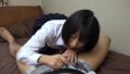 射精を受け止めたパンティを穿きオナニーする女の子。その姿に興奮して再びぶっかけ射精!