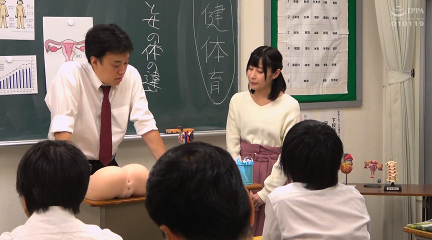 あどけない笑顔にキュン。アイドル顔で教え方がうまい!と人気の新任教師、桃先生。今日は男子校の性教育実習。この実習、男女の心と身体の変化を、五感全てで体感することで女性に対するより深い理解を促すためのたいせつな授業なんです!性教育の重要性を充分理解している桃先生はやる気満々。「みんな、よく見ててね。こうすると興奮が高まると思います…」と、模型を使って感じるポイントを逐一解説。めちゃわかりやすい!「膣口のほうも充分に濡れているか、確認してから優しく指を挿入してくださいね…」「模型だけじゃなくて先生の身体で教えて!」という勉強熱心な生徒からのリクエストに、素直にM字開脚でオナニー実演。生徒たちが小陰唇を観察してたらますます濡れてきちゃって(笑)。男性教師が武骨な指でかきまわすと、「先生、何してんの!?」床がびしょびしょじゃん(笑)。これが潮吹きか~!次は正しい性行為の方法を身につけるための性交渉実技。「私が相手をするしかないですよね…、がんばります!」まずは桃先生、おもちゃで即アクメ(笑)。「桃先生、いっぱい唾液が出てるのはどうしてですか?」女性器触られながら根元までディープフェラ。立ちバックで挿入されると「私は背後からのほうが好きです…。あぁん。しかも立ちバックだと子宮口までしっかり刺激されて、また違った刺激を味わえます…」とやっぱり教え方がうまい!「首を絞められるのが好きです…」とロールスロイスで男性教師に鬼突きされながら首絞めファック。「もっと激しくぅ!」と、かなりの性嗜好の持ち主(笑)。スパンキングの痛みが快感に変わる様を生徒たちがメモメモ。正常位で激ピスしまくると「先生にいっぱい出して~」と懇願するので、ドロドロ精子をかわいいアイドル顔にた~っぷり放出しちゃいました!ド変態の桃先生、ありがとうございました!